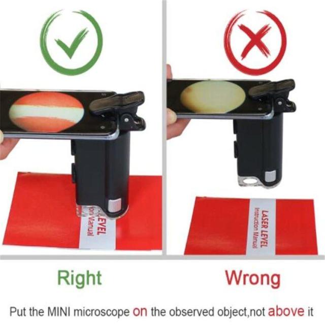 取り外し可能な電話クリップ:取り外し可能なクリップを使用して、携帯電話のカメラにすばやく簡単に取り付けることができます。ユニバーサル電話用の60倍ズーム顕微鏡倍率レンズ。