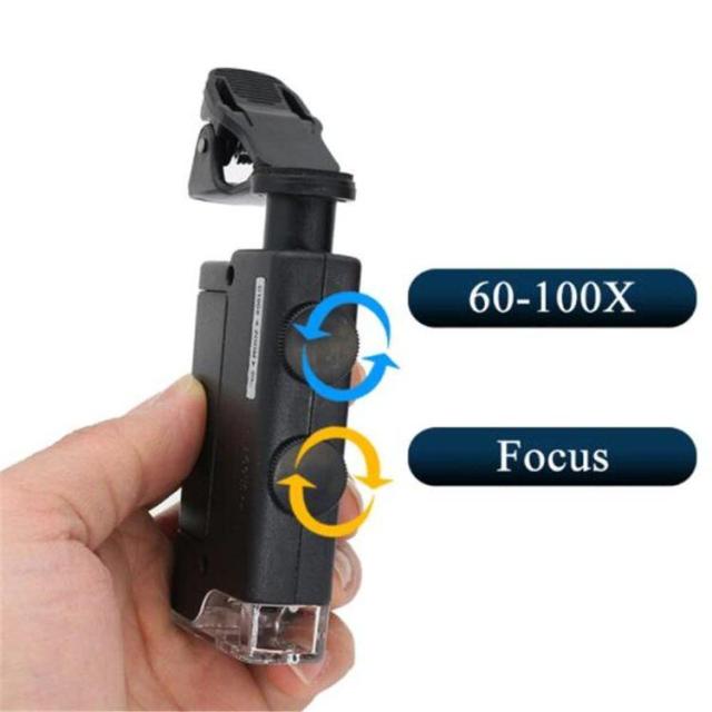 携帯クリップ顕微鏡 ズーム顕微鏡 ガラスレンズ素材 LED照明、60X -100X倍拡大鏡、通貨検出用