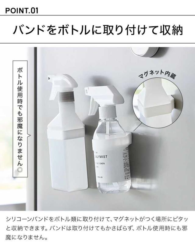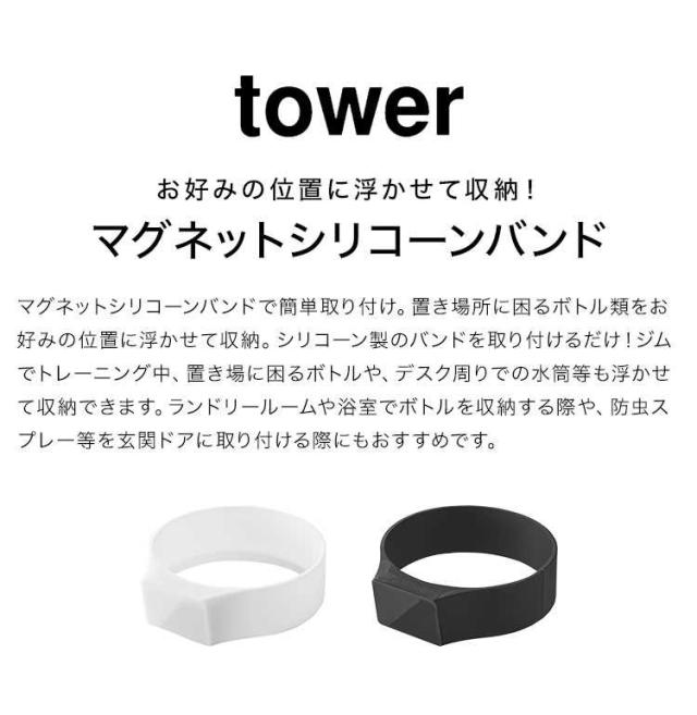 マグネットシリコーンバンド 山崎実業 タワー tower ボトル スプレー 収納 磁石 マグネット ドリンクホルダー スプレーホルダー 便利 貼り付け シリコン 浮かせる収納 ボトルホルダー おしゃれ ホワイト ブラック 1308 1309 公式 スプレー缶 ジム ドリンク 洗剤 yamazaki