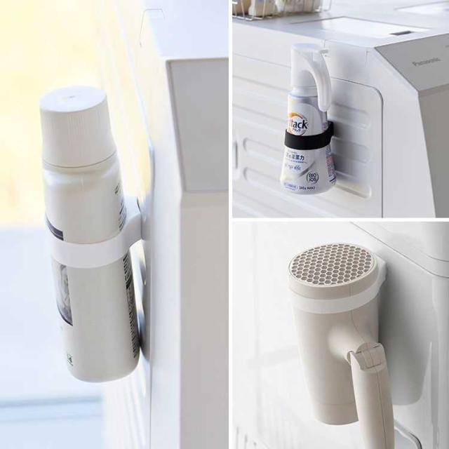 マグネットシリコーンバンドで簡単取り付け。置き場所に困るボトル類をお好みの位置に浮かせて収納。シリコーン製のバンドを取り付けるだけ!ジムでトレーニング中、置き場に困るボトルや、デスク周りでの水筒等も浮かせて収納できます。ランドリールームや浴室でボトルを収納する際や、防虫スプレー等を玄関ドアに取り付ける際にもおすすめです。