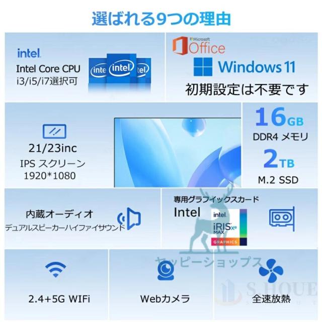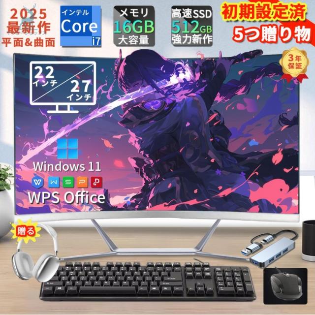2025 最新作 デスクトップパソコン 一体型PC CPUインテル 27型フルHD液晶 第13世代Core i5 i7 Office付き メモリ16GB SSD 128GB 512GB キーボードとマウス付属
