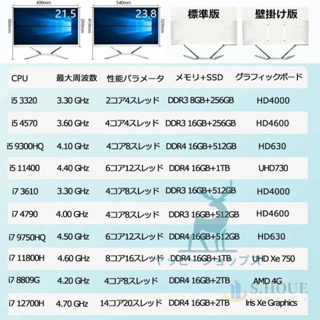 プロセッサ :Intel Core i3-2310M、i5-3470s、i5-4590s、i7-4790
