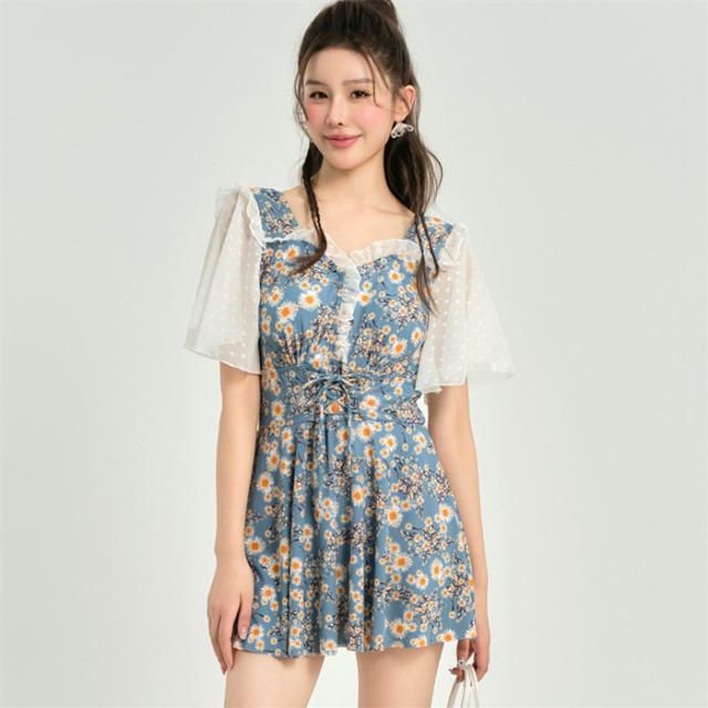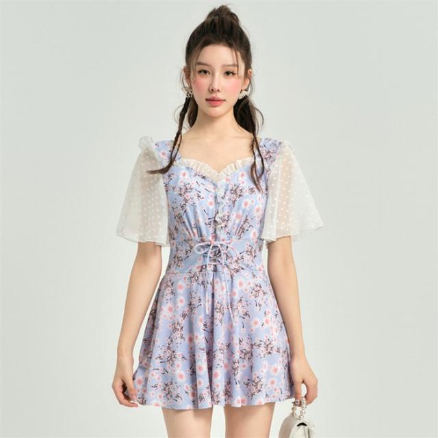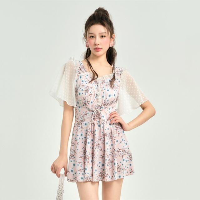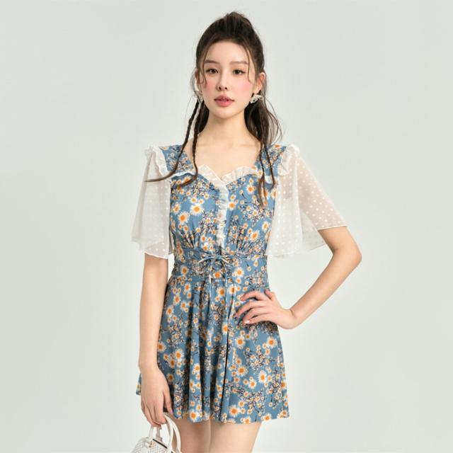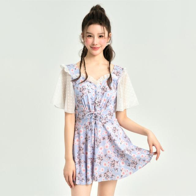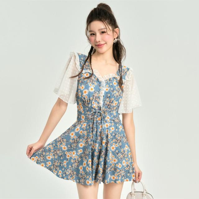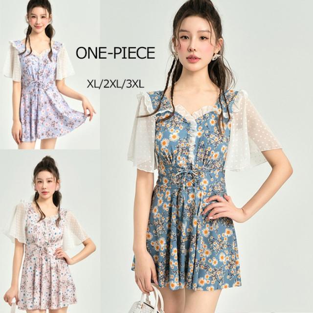 ワンピース水着 体型カバー水着 大きいサイズ レディース ママ水着 オールインワン フレア 花柄 ぽっちゃり 二の腕 カバーアップ XXL 3L 4L 5L 6L 13号 15号 17号 19号 女性 オトナ女子 20代 30代 40代 露出控えめ dh037zbzbm5