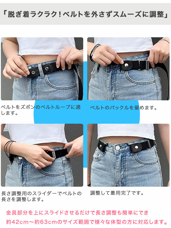 ノーバックルゴムベルト 楽ちん ゴムベルト ベルト レディース メンズ ノーバックル 伸縮 無地 ウエスト 調整 かわいい おしゃれ 簡単 ゴム 女性 男女兼用 メンズ キッズ スカートベルト ワンタッチ