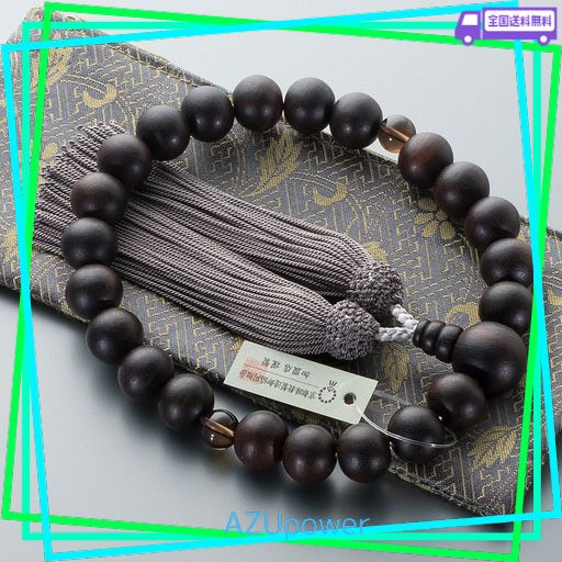 仏壇屋 滝田商店 数珠 男性用 縞黒檀 (艶消) 2天 茶水晶 22玉 正絹頭付房(ねず茶色) 【 高級ファスナー式数珠袋付き 】すべての宗派でお使いいただける 男性用 念珠 京都製 【滝田商店発行 …