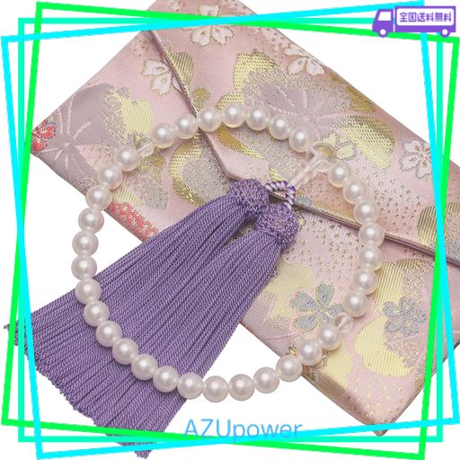 通雲念珠屋 数珠 女性用 本水晶 星月菩提樹 念珠 葬式 葬儀 お通夜 略式 じゅず 数珠袋付き すべての宗派で使える (貝パール/藤)