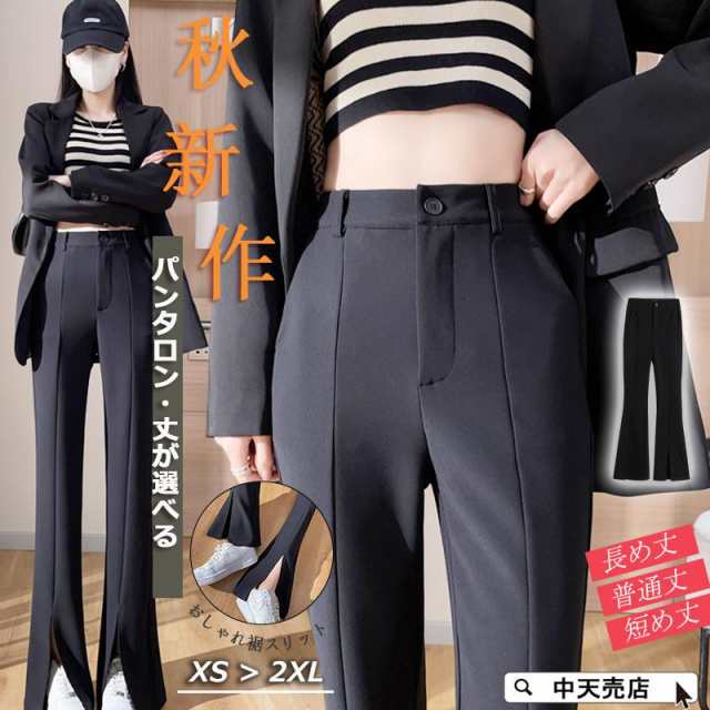 パンタロン レディース スーツパンツ パンタロンパンツ 裾スリット キレイめ 長ズボン 黒 ロングパンツ 韓国風 オフィス ハイウエスト 着痩せ 無地 通勤OL 春秋