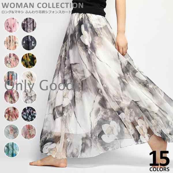 ロングスカート マキシスカート 夏 花柄 シフォン レディース スカート おしゃれ メール便
