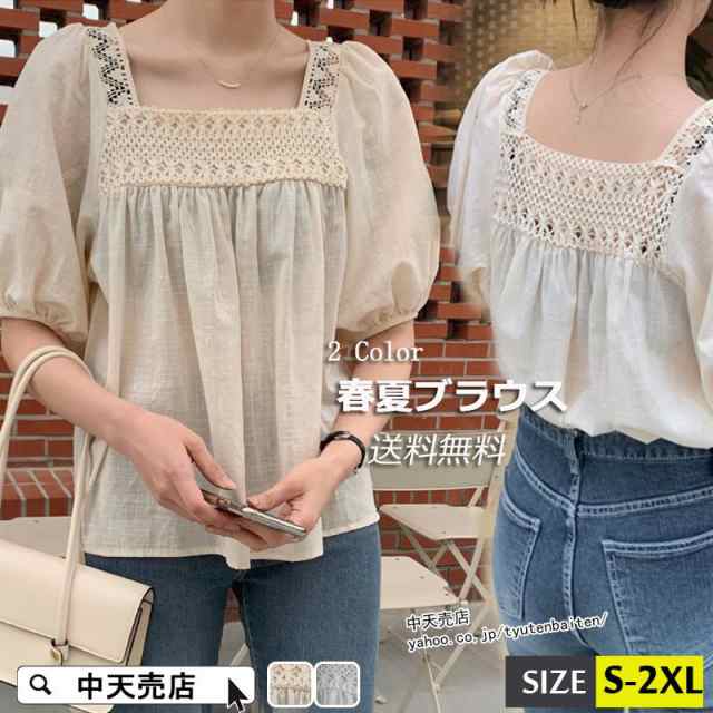 夏ブラウス uvカット シャツ 半袖レディース パフスリーブ 韓国風 カーディガン 紫外線対策 スクエアネック 気質 レース切り替え 薄手 シンプル おしゃれ ボレロ