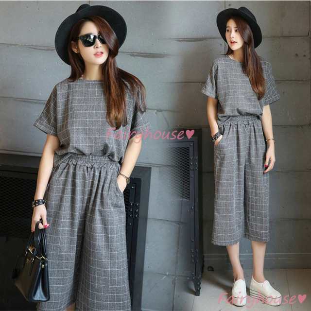 連携キーワード:セットアップ レディース 40代 春夏 半袖セットアップ通勤 チェック柄 ワイトパンツ 七分丈パンツ tシャツ セットアップ カジュアルオシャレ 韓国風 着痩せ 大人 新作
