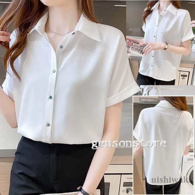 女性シフォンブラウス 夏 トップス おしゃれ 襟付き シャツブラウス 半袖 新作 レディース ゆったり ホワイトシャツ スーツ インナー オフィス