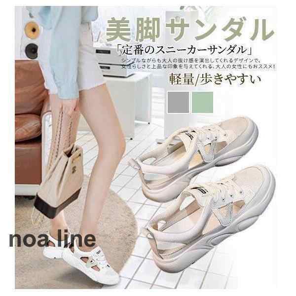 夏用スニーカー サンダル 軽量 夏 通気 レディース スポーツサンダル フラットスポサン 厚底 スニーカー サンダル サマー