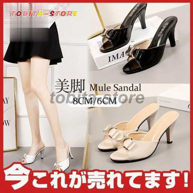 チャンキーヒール ミュール レディース スリッパ サンダル ハイヒール カジュアル 美脚 歩きやすい 痛くない パーティー クラブ シューズ