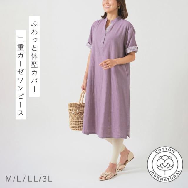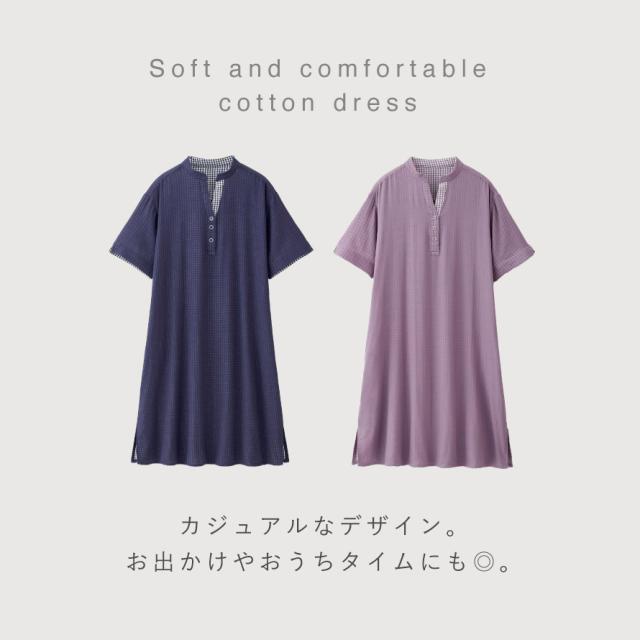 綿100%の優しい肌触り。ふわっと体型カバーできるワンピース。軽くて通気性の良い綿100%の二重ガーゼ素材。吸水性・吸湿性に優れているので汗をしっかり吸水します。柔らかく、優しい肌触りの快適な着心地。