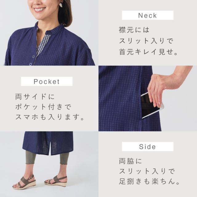 チュニックワンピース 50代,チュニック 大人可愛い,綿100 チュニック,チュニック,ワンピース,チュニックワンピース,大人可愛い,5分袖,五分袖,二重ガーゼ,ダブルガーゼ,ガーゼ,綿100%,コットン100%,綿,コットン,100,肌に優しい,敏感肌,乾燥肌,スキッパー衿,スリット,ポケット付き,ポケット,ギンガムチェック,ナチュラル,ネイビー,紺,ラベンダー,グレー,パープル,紫,M,L,LL,3L,春,夏,春夏,大人,レディース,女性,お年寄り,高齢者,シニア,50代,60代,70代,80代,おしゃれ,お洒落,オシャレ,かわいい,可愛い,シンプル,カジュアル,きれいめ,体型カバー,コーディネート,着回し,細見え,着痩せ,着心地,ミセス,ミセスファッション,婦人,