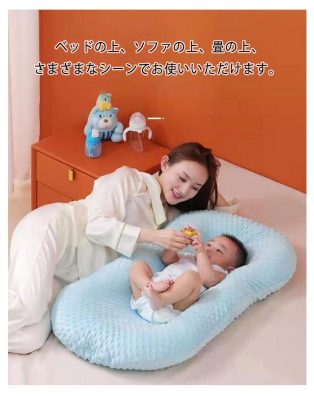 | 添い寝用のベッドインベッドとして使用可能。 赤ちゃんをふんわりと包み込んで、親の寝返り被害からしっかり守り、夜間授乳やおむつ替えも便利です。 包み込まれるような形状は、赤ちゃんにお安心した環境を与えてくれ、眠りの質を高めてくれます。 ファスナー付き、カバーを外して水洗いも可能です。 ベッドの上、ソファの上、畳の上、さまざまなシーンでお使いいただけます。 軽量で帰省や旅行にも携帯便利です。 | |