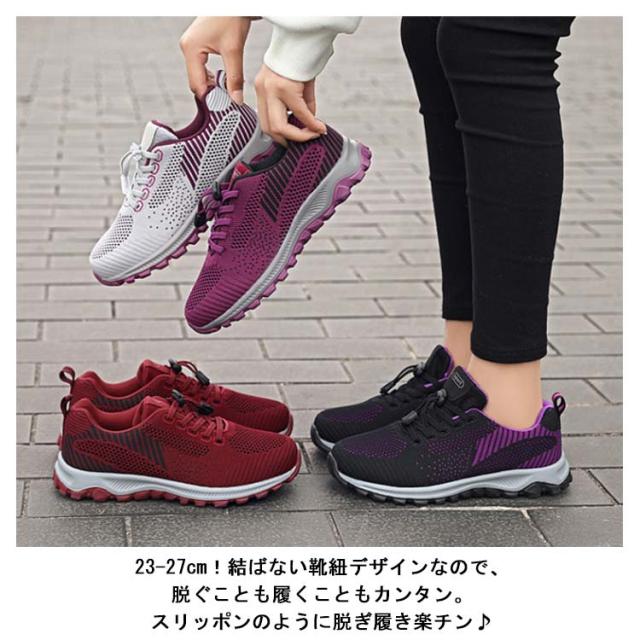| 23-27cm!結ばない靴紐デザインなので、脱ぐことも履くこともカンタン。スリッポンのように脱ぎ履き楽チン? アッパーはメッシュを採用して、通気性がアップ!インソールは足にやさしくフィットし通気性もよいカップインソール設計にして、汗も早速に排出できて、優しくて快適な歩行を実現しています。 アウトソールは耐摩耗性に優れたゴムを採用して、付着力が強くて滑りにくく、クッション性も強化し、地面との反発力を高め、グリップ性が向上し、安心して履きやすい高齢者用シューズです。 クッション性も持って、歩行運動の疲労を減らすのに役立ちまして、中高年の女性、立ち仕事をしている女性もオススメです! オフィスでの仕事履き、普段履き、室内履き、会社履きはもちろん、旅行や散歩など。 | |