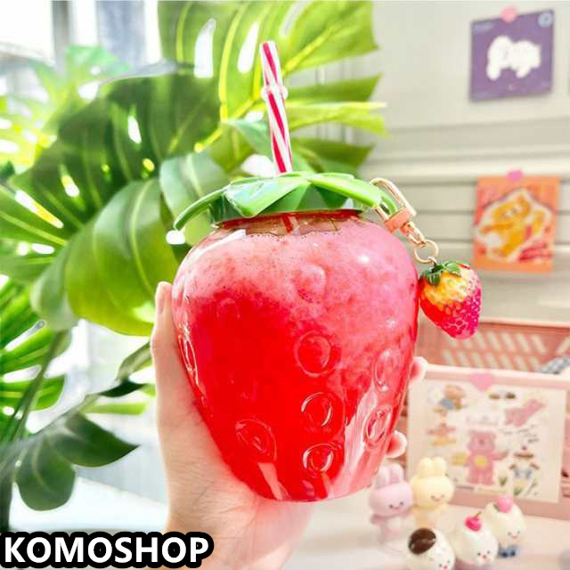 ウォーターボトル かわいい いちご イチゴ ストロベリー ins ストロー付き 1個【水筒 ドリンク ボトル ストローボトル ウォーターカップ