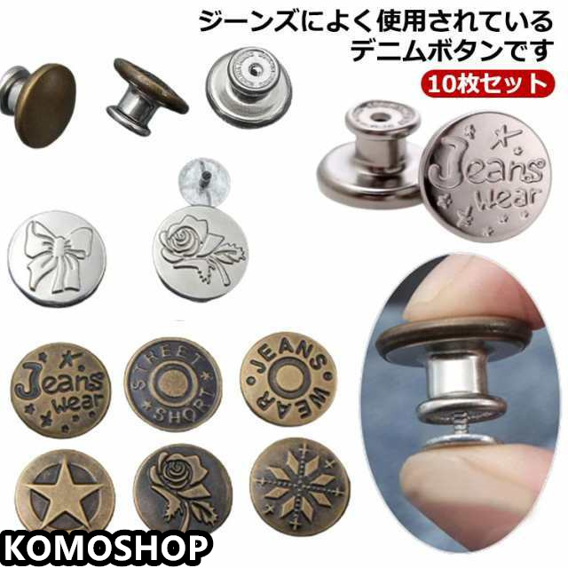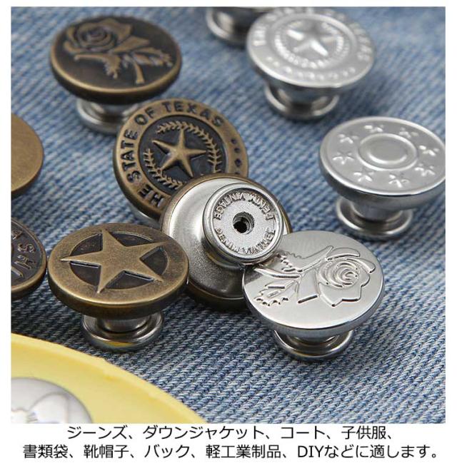 デニムボタン 金具 釦 帽子用 10枚セット タックボタン ジーンズ用 ジーンズボタン デニムジャケット 縫製不要 取り外し可能 錆びにくい 金属ボタン デニムパンツ ボタン コート シャツ バッグ 靴 はめ込み式