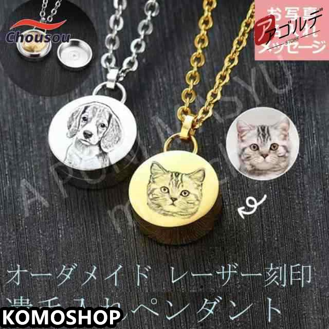 オーダーメイド ペット 遺灰 遺骨 遺毛 ペンダント レーザー 刻印 ネックレス 写真 名入れ オリジナル メモリアル ギフト プレゼント