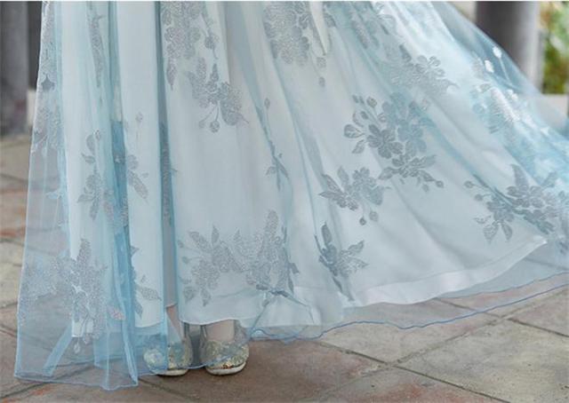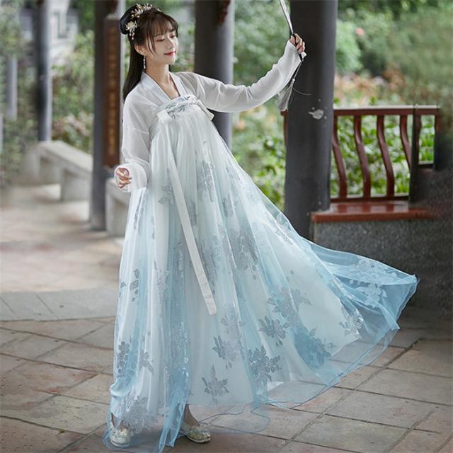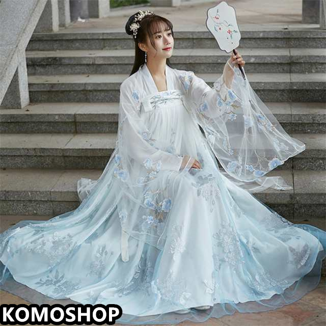 水色 3点セット ドレス 唐装漢服 漢服仙女 中国古風 中華服 チャイナ服 チャイナドレス ワンピース コスチューム 中国古代衣装 女性 ロングドレス おしゃれ ステージ 撮影 舞台衣装 華流ステージコスプレ衣装 中国古代宮廷風コスプレ衣装