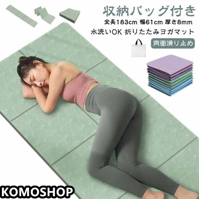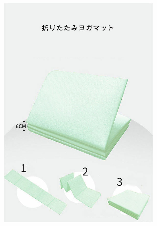 | 全長183cm 幅61cm 厚さ8mm 折りたたみヨガマット 両面滑り止め 収納バッグ付き 水洗いOK 両面滑り止め仕様でグリップ力に優れています。 ストレッチ、バランスエクササイズ、トレーニング、ダイエットエクササイズなど、さまざまなアクティビティに最適です。 | |