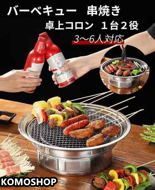 コンロ バーベキュー 串焼き 焼肉 焼き鳥 一台2役 卓上 家庭用 アウトドア キャンプ ソロキャンプ 3?6人