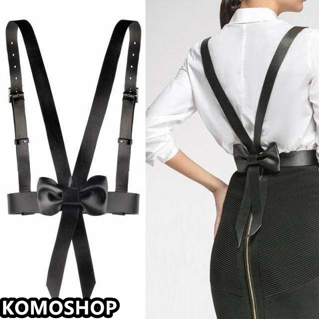フェイクレザー製の黒色のベルトと肩ベルトを繋げ背中に大きなリボンをデザインしたボンデージファッション風のボディベルト。 大人の女性を満足させてくれるボンテージファッションは、服の上からはもちろん、水着や素肌に付けても大人可愛いお洒落なレザーベルトです。 サルペット風のオシャレなウエストベルトとショルダーベルトは普段のコーディネートにプラスするだけで大人パンクな女性を演出できるアクセサリーです。 洋服としてではなく、ジュエリー感覚で楽しめるコルセット風ベルト。サイズも調整できる。 お洒落な彼女やママにプレゼントしても喜んでもらえる。もちろんメンズが使ってもOK.コスプレや衣装にも使えるので、業界の人やモデルさんにもおすすめです。 個性的なファッションをお探しの人にも!