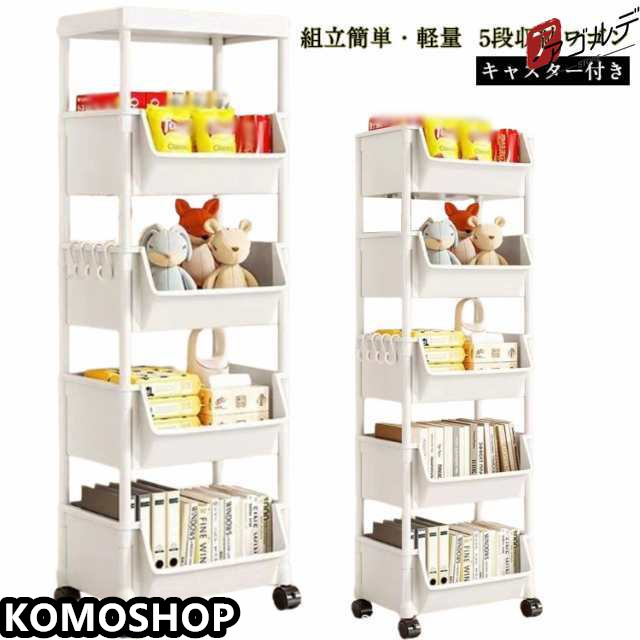 キッチンワゴン 5段 マルチワゴン キャスター付き 収納ワゴン 収納棚 収納ラック 本棚 おしゃれ キッチン収納 バスケットトローリー ワゴ