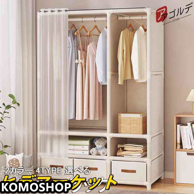 ハンガーラック おしゃれ 収納 カバー付き 引き出し付き スリム ハンガー掛け クローゼット コート スチール シェルフ ラック 省スペース