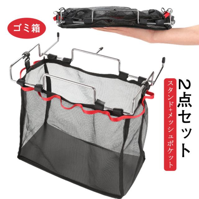 アウトドア スタンド+メッシュポケット 2点セット ゴミ箱 スリム レジ袋ハンガー 送料無料 ホルダー レジ袋 ゴミ袋 ごみ袋 スタンド ダストボックス キッチン レジ袋スタンド