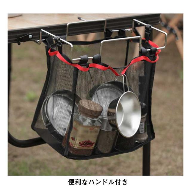 | 場所を取らないシンプルなデザイン 組み立ては簡単 便利なハンドル付き メッシュ袋を引っ掛けるだけで完成 | |