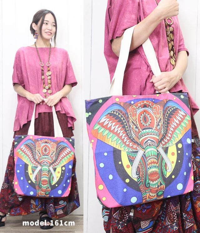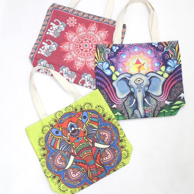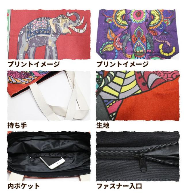 エコバッグ 手提げ ショルダー 大容量 キャンバス !サイケデリックトートバッグ レディースメンズ エスニック柄 A4サイズ ファスナー付き