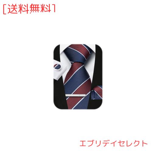 ◆商品名:[HISDERN] ネクタイ メンズ セット ビジネス: 赤 ブランド ネクタイ ストライプ チーフ シルク 通販 就活 成人式 卒業式 入学式