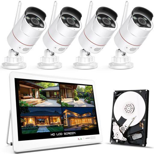 【500万高画素夜間カラー・金属製】YESKAMOO 防犯カメラ 屋外 ワイヤレス 12インチ防犯モニター 録音通話 HDD内蔵 10台増設 AI人検知 フルカラー暗視 発光威嚇 H.265圧縮 監視カメラ無線セット …