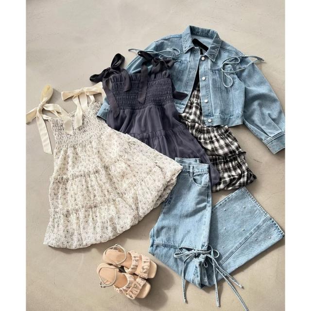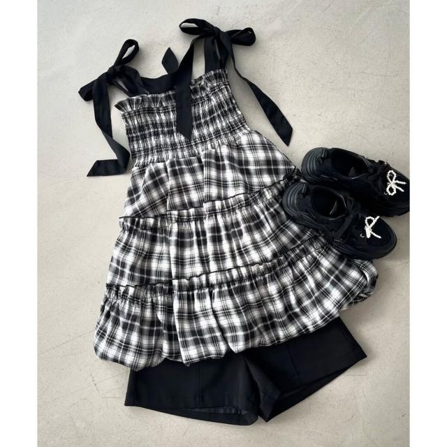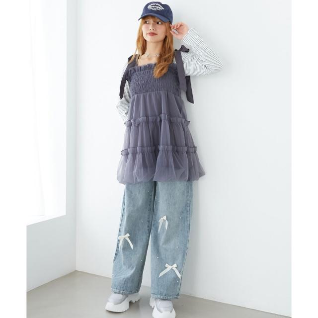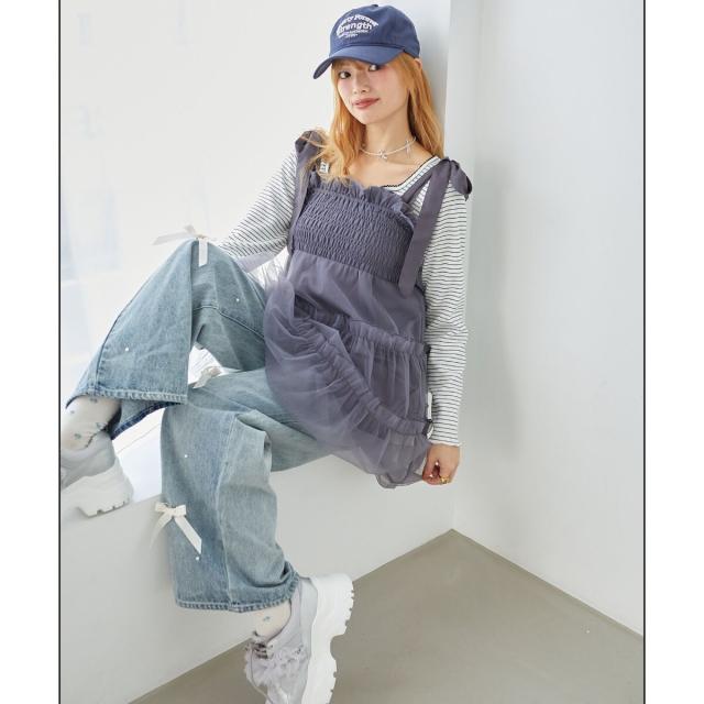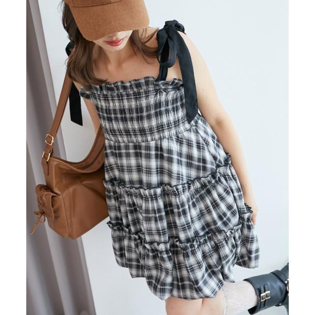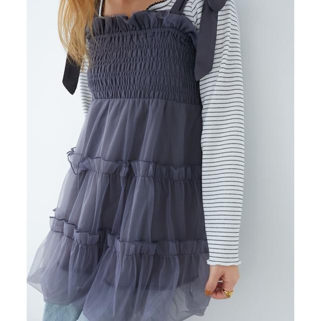 肩リボンでお好きな着丈に調整できるのでミニワンピとしても活躍してくれます◎