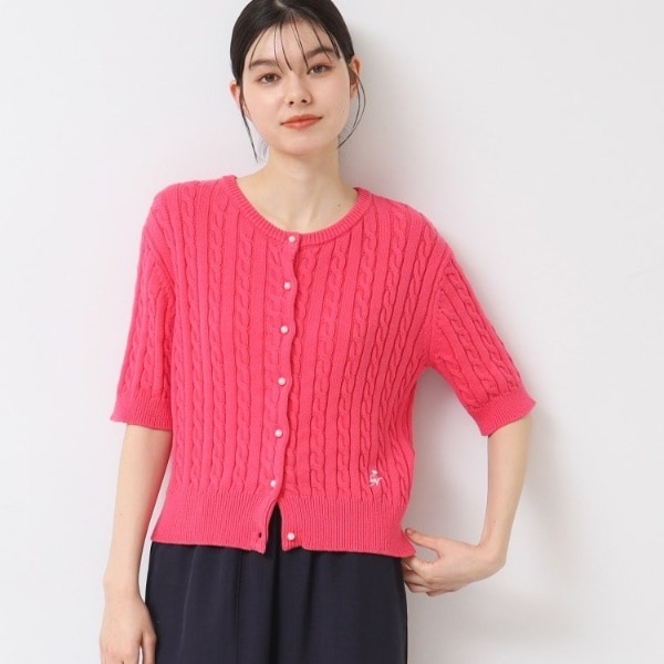 デッサン(Dessin)/【洗える】半袖ケーブルニットコットンカーディガン