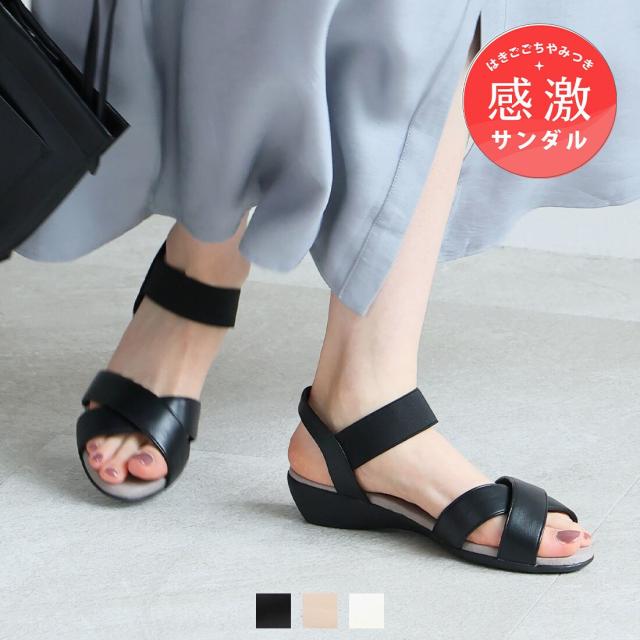 履きごこちやみつき!クロスデザインゴムバンド感激サンダル