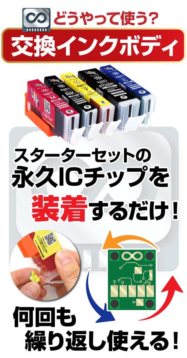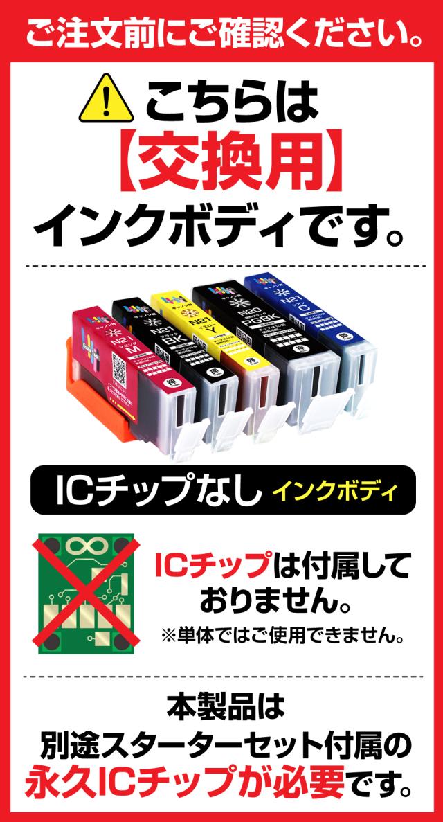 | 繰り返し使える永久ICチップ専用の交換用互換インクカートリッジです。 別途永久ICチップ付きスターターセットが必要になります。 本製品だけでは、ご使用になれませんので予めご了承ください。 |