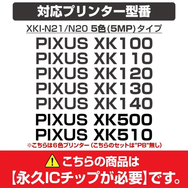 【永久ICチップ専用交換用ボディ】XKI-N21+N20 / 5MP 大容量 5色セット【こちらの製品だけでは使用できません。】 キャノン Canon 互換インクカートリッジ エコロジー ゴミ削減 XKI N21 N20 5MP PIXUS XK100 XK110 XK120 XK130 XK140 XK500 XK510