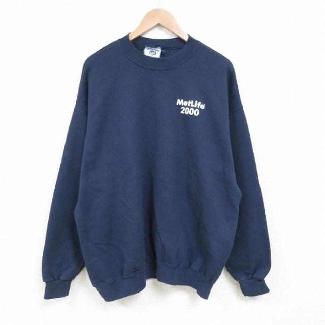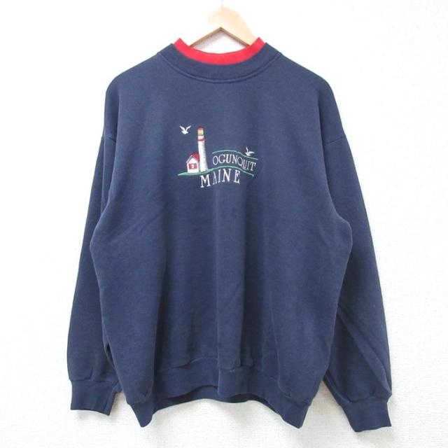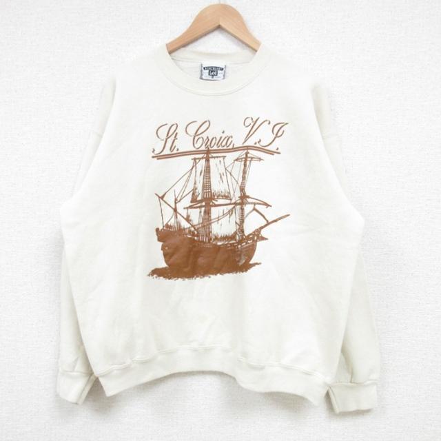 【商品名】 XL★古着 リー Lee 長袖 スウェット メンズ 00年代 00s 星条旗 刺繍 クルーネック 白