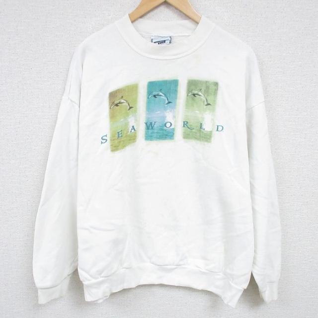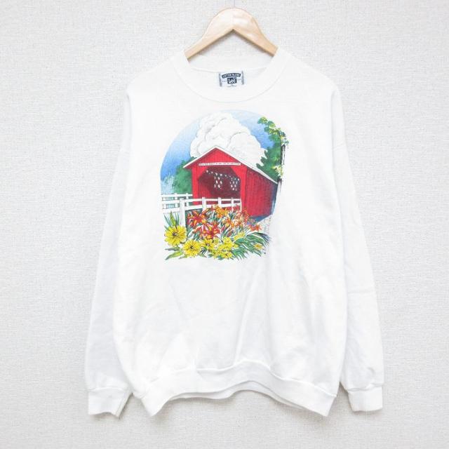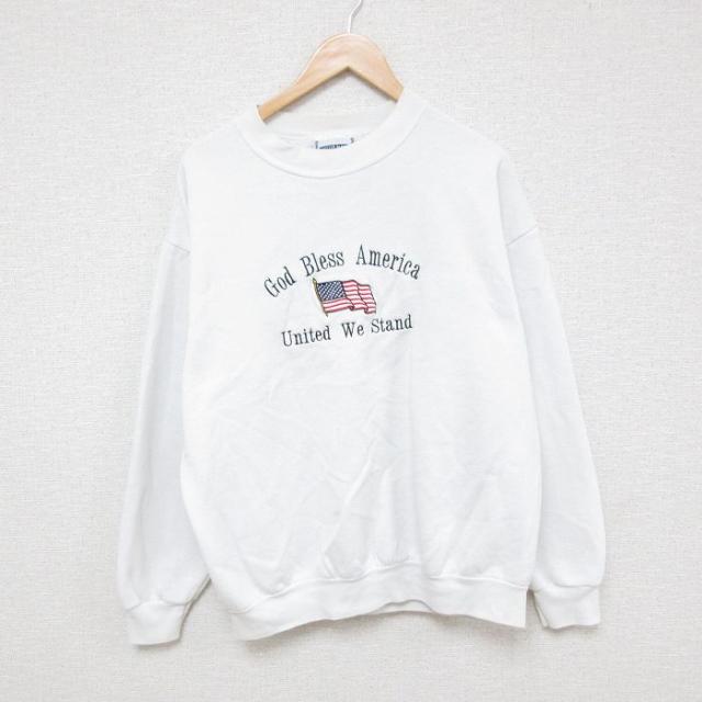 古着 リー Lee 長袖 スウェット メンズ 00年代 00s 星条旗 刺繍 クルーネック 白 ホワイト XLサイズ 中古 スエット トレーナー 中古 古着