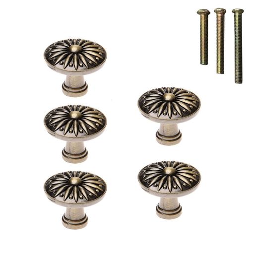 LEMFEMA 引き出し取っ手 アンティーク調 5個入 3サイズネジ付 引き出しノブ 引き出しつまみ 取手 タンス キャビネット 食器棚 金具 DIY 花柄 ブロンズ【単孔 直径35MM】