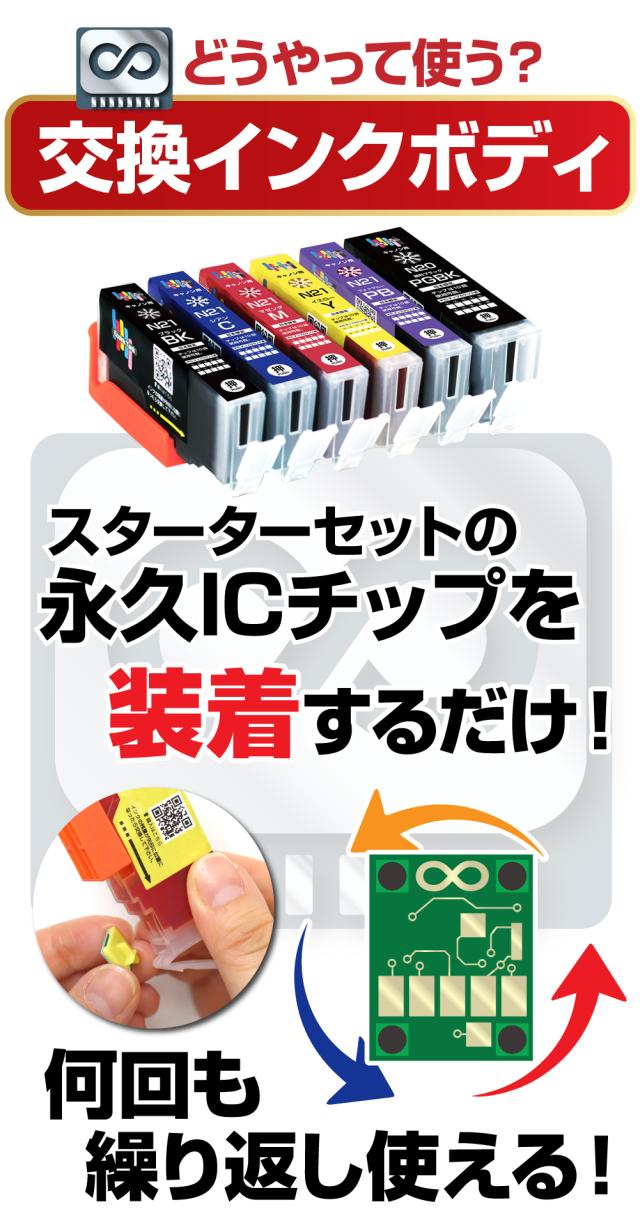 本製品は、純正同等品質とした永久ICチップ専用の交換用インクボディです。メーカー純正品ではありません。