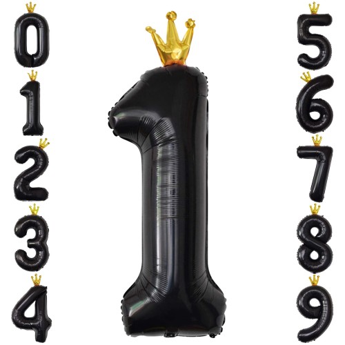 GRESATEK バルーン 数字 風船 誕生日 黒 40インチ 大きい ナンバー1 バースデーバルーン 王冠付き クラウン 飾り付け 結婚式 パーティー 記念日 ウェディング ブラック
