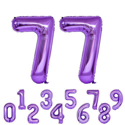 パープル 誕生日 数字 バルーン 2PCS 紫い むらさき ナンバー バルーン 77 ハッピーバースデー バルーン 77歳 誕生日 数字 バルーン 32インチ 約80cm アルミ風船 結婚式 記念日 お祝い