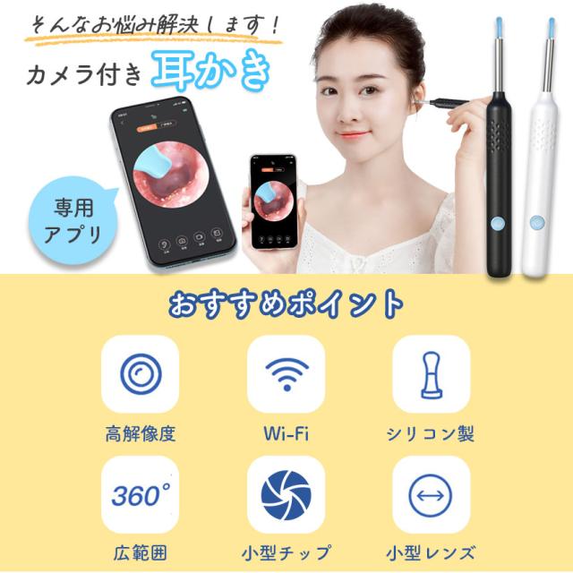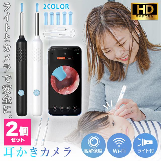 耳かき カメラ 耳鏡 2個セット イヤースコープ WIFI接続 耳垢 耳掃除 LEDライト 超小型レンズ 介護用 子供 高齢者 アプリ付き カメラ付き ライト LED 無線 軽量 充電式 スマート耳かき 見える耳かき カメラ付き耳かき 母の日 介護耳かき プレゼント 赤ちゃん 耳 クリーニング