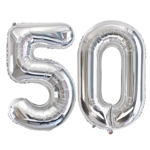Vthoviwa 32インチ バルーンアルミ50 ヘリウム風船 数字バルーン50銀 0123456789,10-19,20-29,30,40,50,60,70,80,90,100 誕生日 カーニバル 飾り付け記念日パーティー装飾銀50 男女兼用 大きい しじヘリウム
