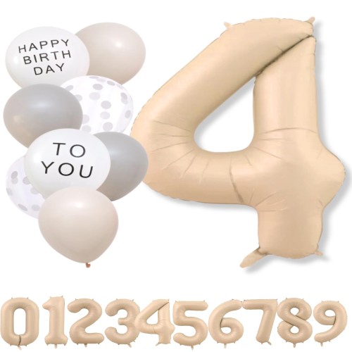 La Kissa 数字 バルーン ベージュ 大きい 誕生日 風船セット くすみ ナンバーバルーン アイボリー バースデー デコレーション (4, ベージュ)