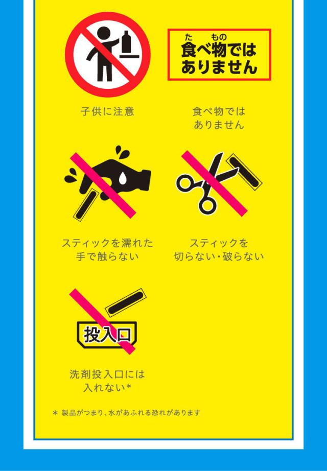 ・洗たく槽の底にスティックを入れることで、外側のフィルムが効果的に水に溶けます。